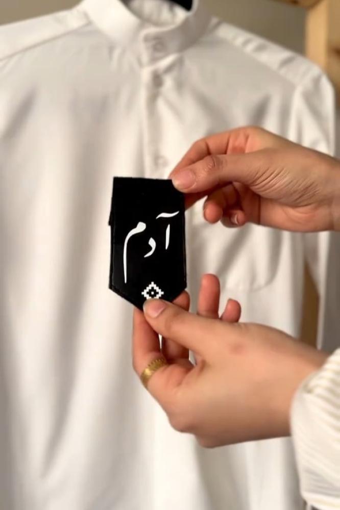 بروش العيد مصنوع من الجلد الفاخر مزين بإسم طفلك من كشخة