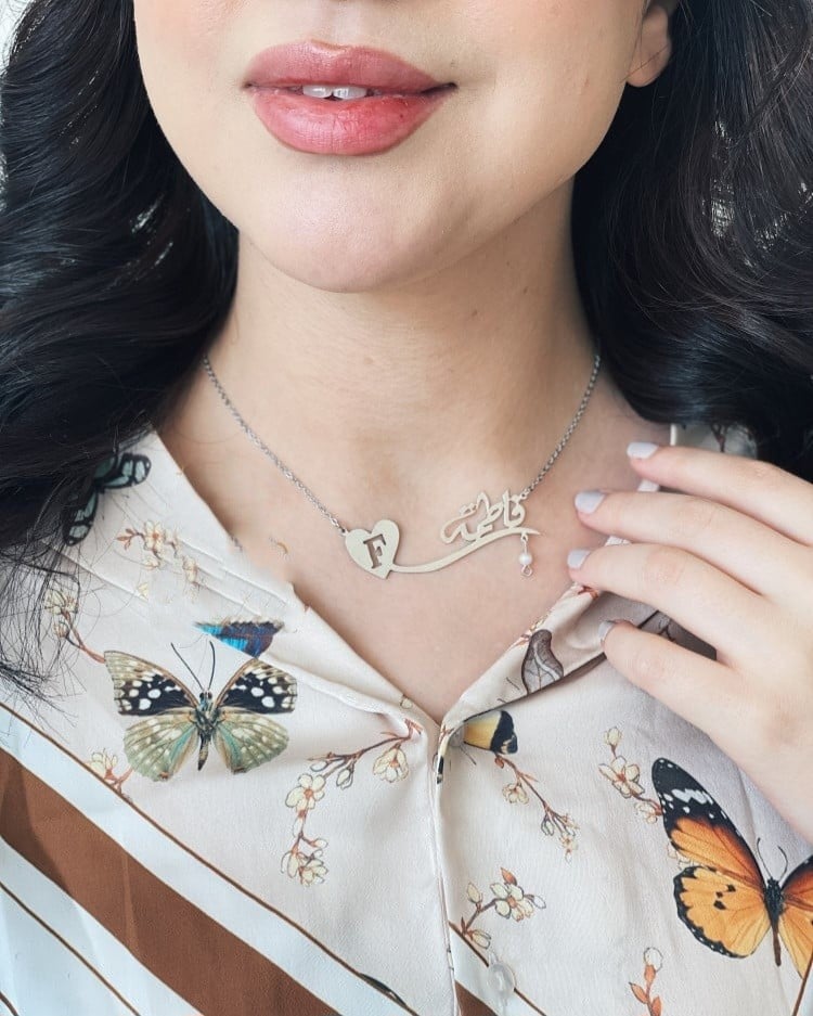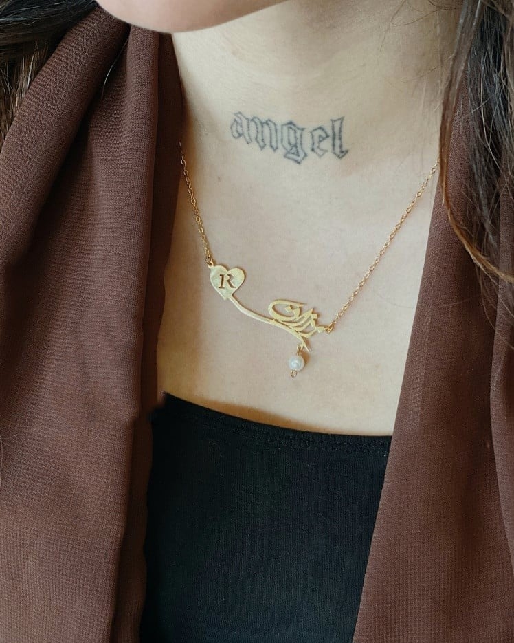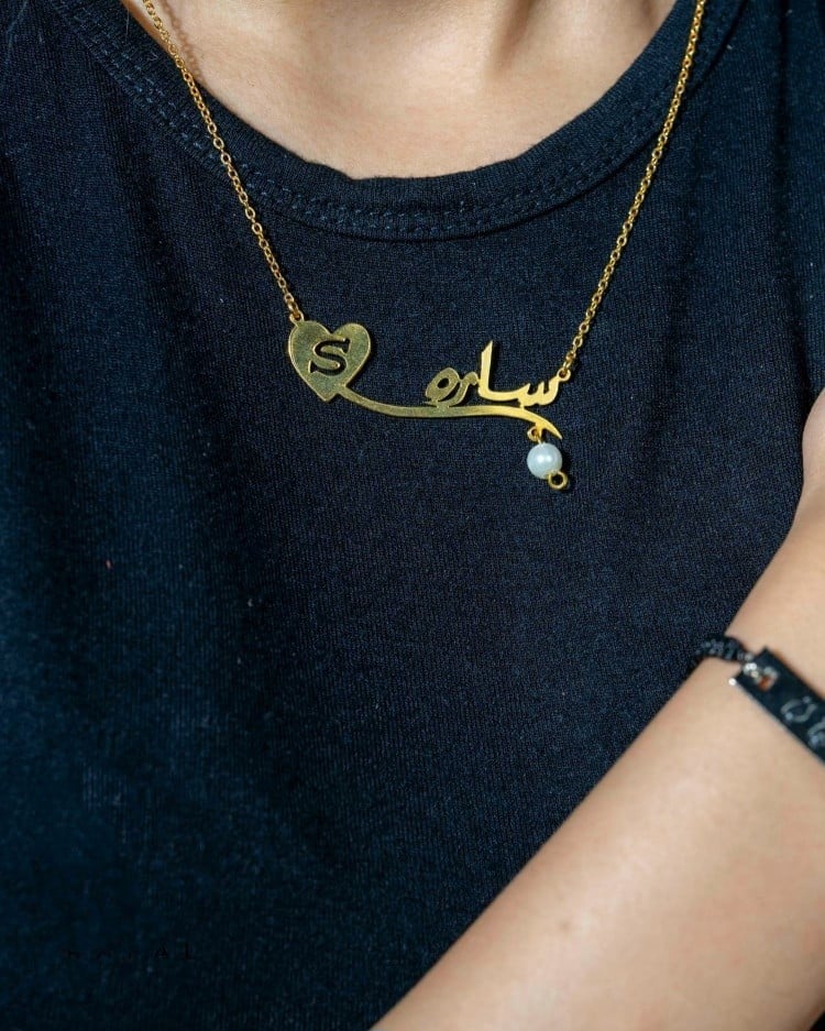 سلسال مميز جدا بتصميم الاسم مع الحرف بالعربي أو الإنكليزيي يمكن حتى طلب اسمين في السلسال واحد مطلي بطلاء ذهب عيار 21 مع ضمان سنتين على اللون بسمك 0.7 مم وطبعا مع علبة مخصصة وكيس